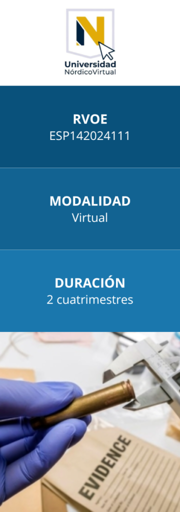 La Especialidad en Balística Forense del Instituto Nórdico Universitario tiene como propósito central la formación de expertos capaces de analizar científicamente las armas de fuego y los indicios que estas generan para el esclarecimiento de hechos delictivos